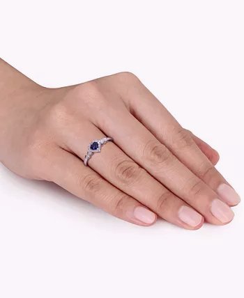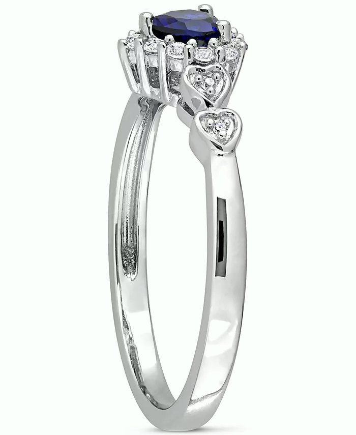 The sweetest of sparkle radiates from this blue & white sapphire heart ring with diamond accents along shank.