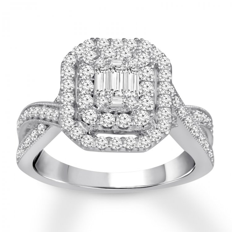 Engagement Ring 1 ct tw Diamonds 14K White Gold