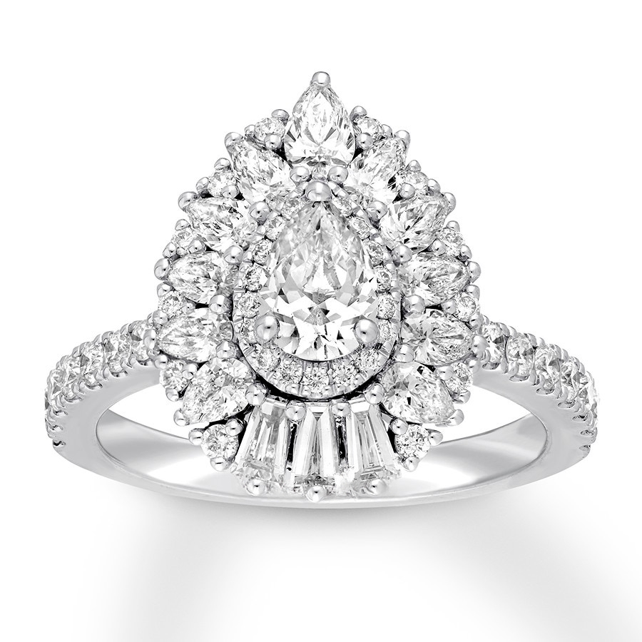Pear-Shaped Diamond Engagement Ring 2 cts tw Round/Baguette 10K Whte Gold